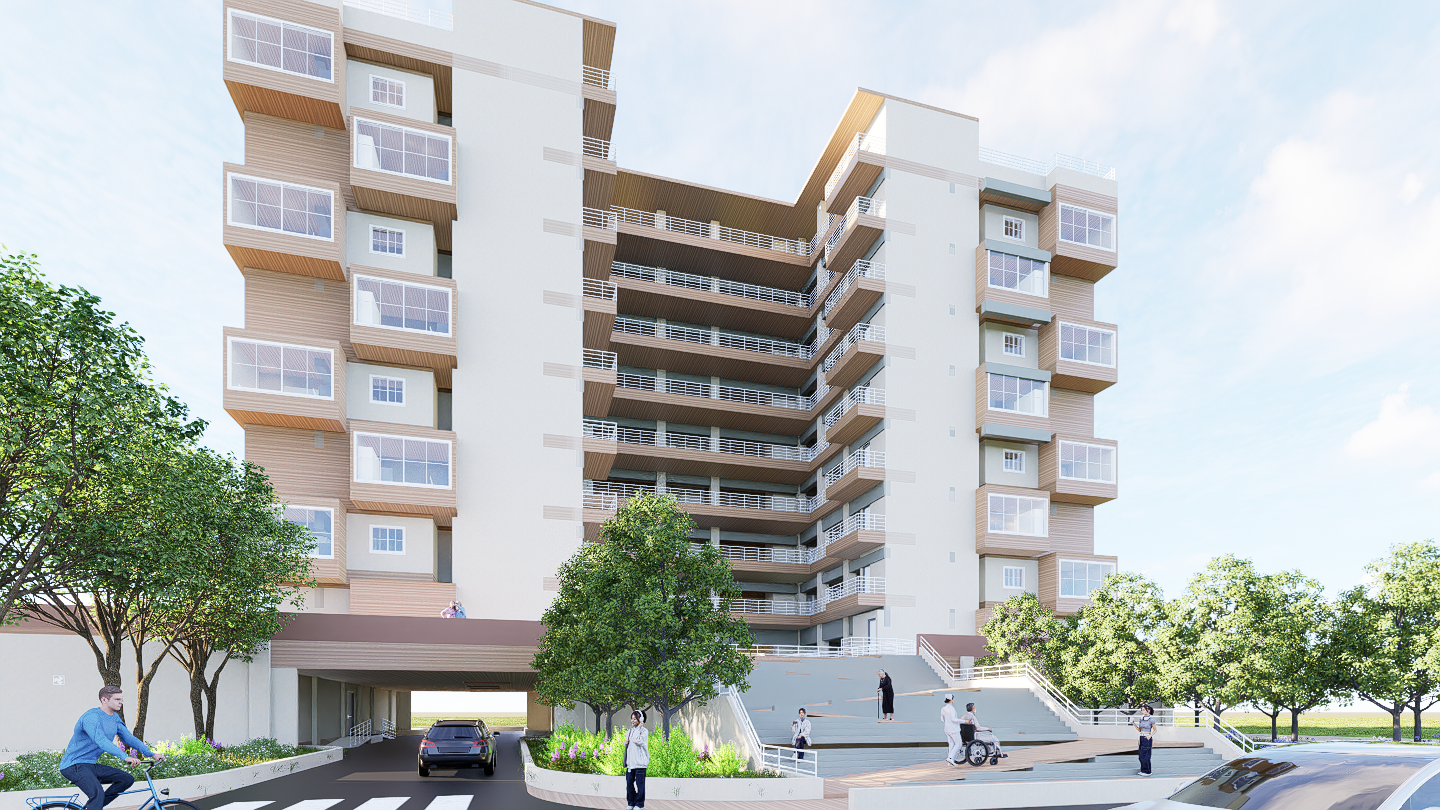 Jenga Heights is a distinctive 8-storey residential complex that reimagines urban living through playful and purposeful design. Inspired by the iconic stacking game Jenga, the apartment's concept revolves around the creative extrusion of key living spaces — primarily the bedrooms and kitchens — to form a dynamic, staggered façade.